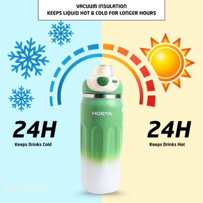 Meet the HOSTA Stainless Steel Vacuum Insulated Water Bottle (500ml) in an elegant green finish – the perfect blend of style, function, and convenience. Built for your active lifestyle, this bottle features double-wall insulation to keep beverages hot for up to 12 hours and cold for up to 24 hours.
