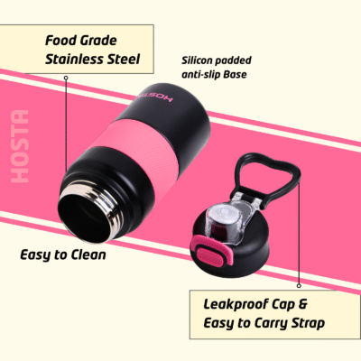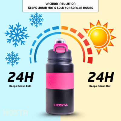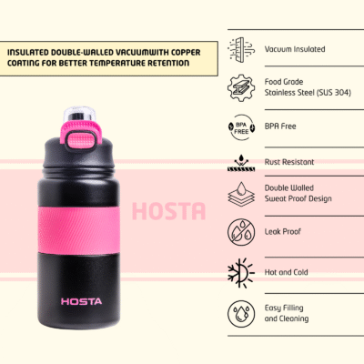 Stay refreshed throughout your day with the stylish and robust HOSTA Stainless Steel Vacuum Insulated Water Bottle (600 ml) in classic Black. Designed for versatility, this bottle keeps your drinks hot or cold for hours — perfect for gym sessions, outdoor adventures, school, or office use.
