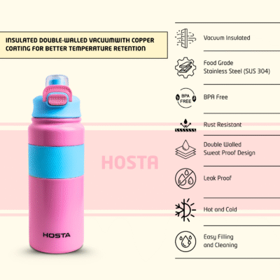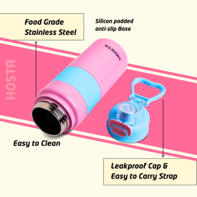 Its leak-proof, BPA-free design and durable stainless steel body make it ideal for gym workouts, outdoor adventures, school, and office use. The built-in hand handle adds portability, while the sleek pink color adds a trendy touch to your hydration routine.